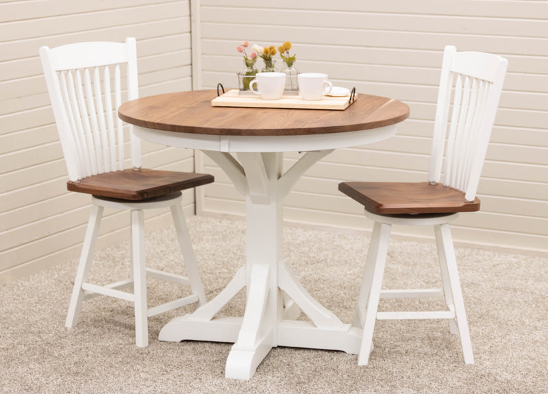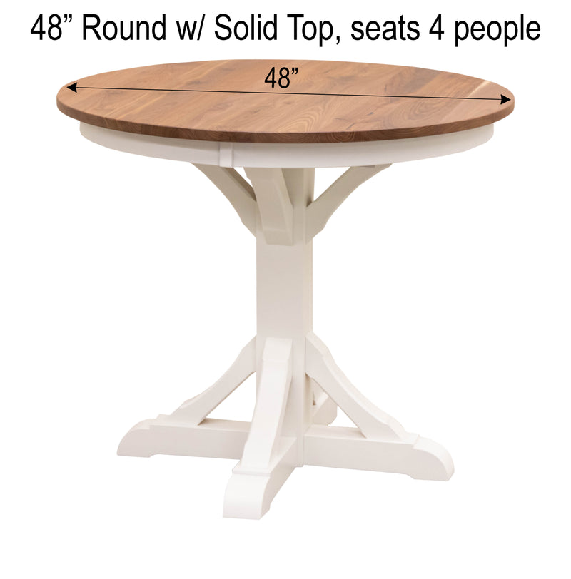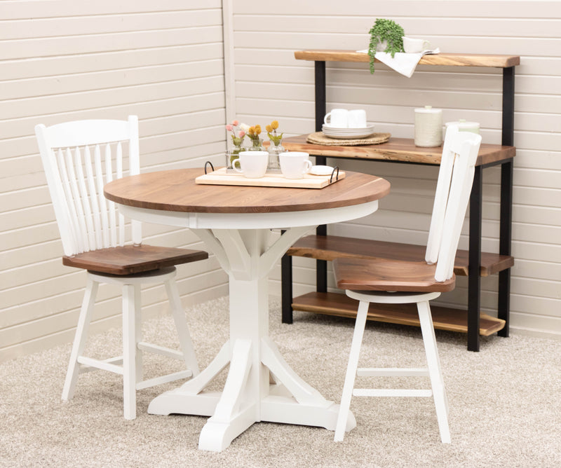 The Newport Round Pub Table is handcrafted with solid wood by Amish artisans in Ohio. The sturdy, well-built table is a stylish addition to any dining space. It can be ordered in your choice of wood and color. For more information, contact a member of our team.