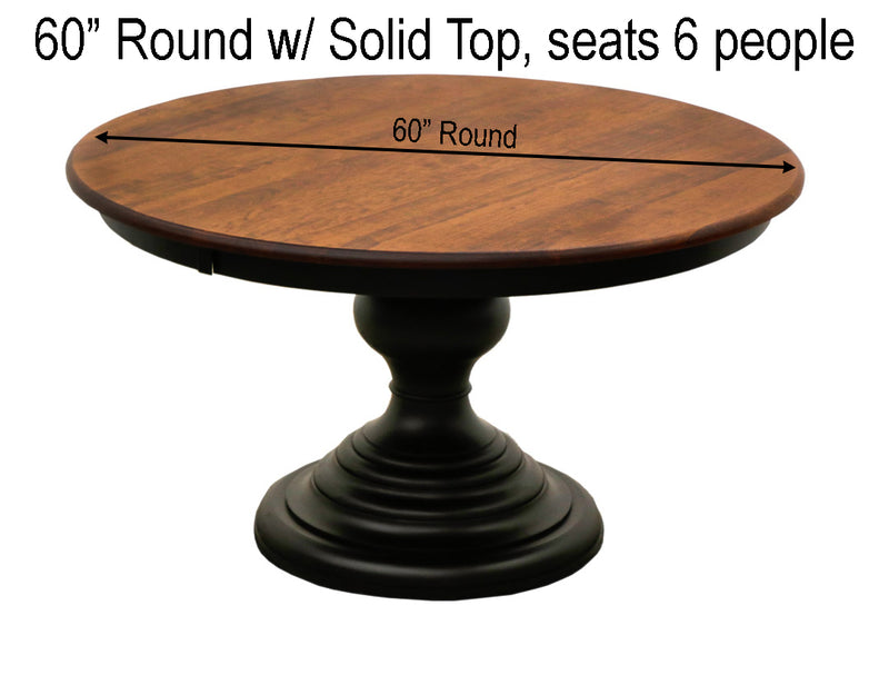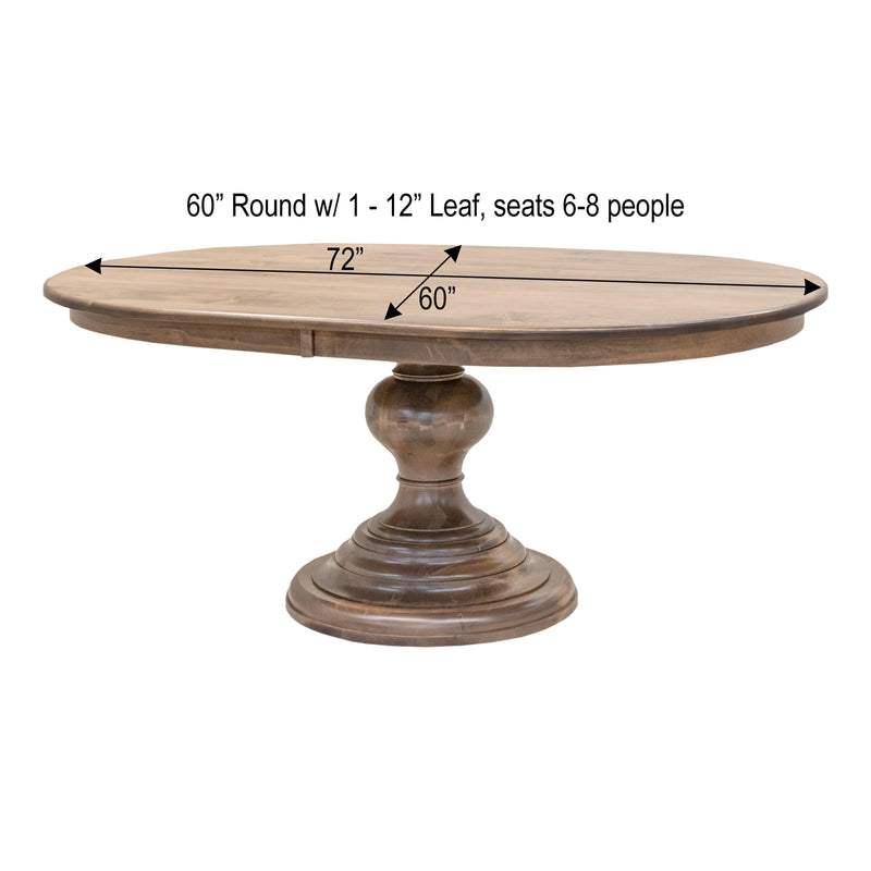 The Global Round Pedestal Dining Table is a beautiful, formal-style table made with solid wood. The Amish-made table features a turned pedestal base. It can be ordered in your choice of wood and color. For more information, contact a member of our team.