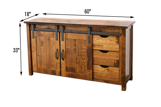 Arcadia 60" Cherry Wood Sliding Barn Door Post TV Console | ASB
