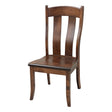 The Austin Side Dining Chair has a two slats in the back that are steamed and bent for support and comfort. Handcrafted with solid hardwood, this Amish made dining chair is built to be durable and long-lasting. This chair is made to order in your choice of wood and color. For more information, contact us at Upstate Amish Furniture Gallery.