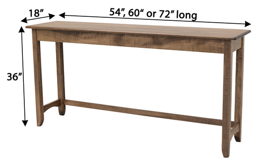 The Austin Sofa Bar Table is the perfect solution to adding a few extra seats to your living room area, without taking up much space. Utilize it for entertaining your quests, watching a game or even a designated spot for your children to do their homework. This Sofa Bar Table can be custom made in a specific size and your choice of wood species and stain color to accommodate your space!