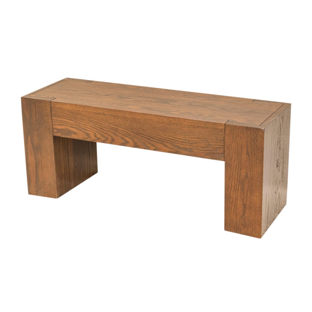 The Oxford Bench by Upstate Amish Furniture Gallery has a modern appearance with its square, chunky legs and dovetailed detail in each top corner. Use this bench as an accent piece to your entryway or living room area. This solid wood bench is built from scratch by Amish craftsmen in Ohio and is made to order in your choice of wood, color and size to accommodate the space you. Contact us for more information.