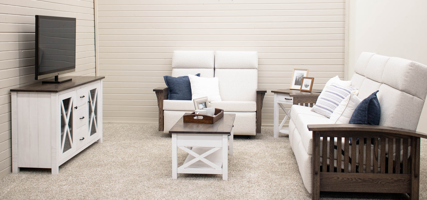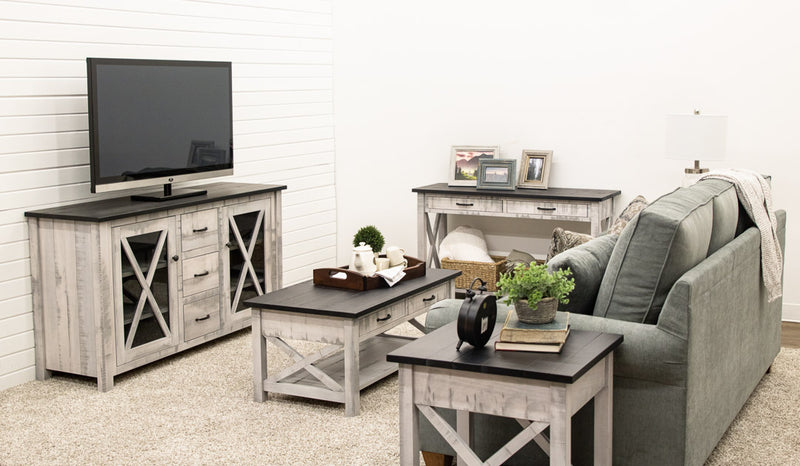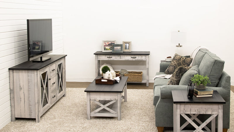 Cambria White & Wood Open Sofa Table | M-GW&RWO-SB - Maple/Glacier White & Rustic White Oak/Stone Brown / 42" long