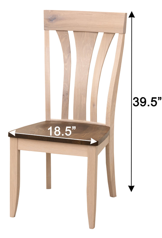 The Hudson Side Dining Chair features sleek top boards and shaker style legs, pairing well with many dining table styles. The Amish-made dining chair is crafted with solid wood, constructed to be durable and long-lasting. The chair can be custom ordered in any wood species and color. Contact a member of our team for more details.