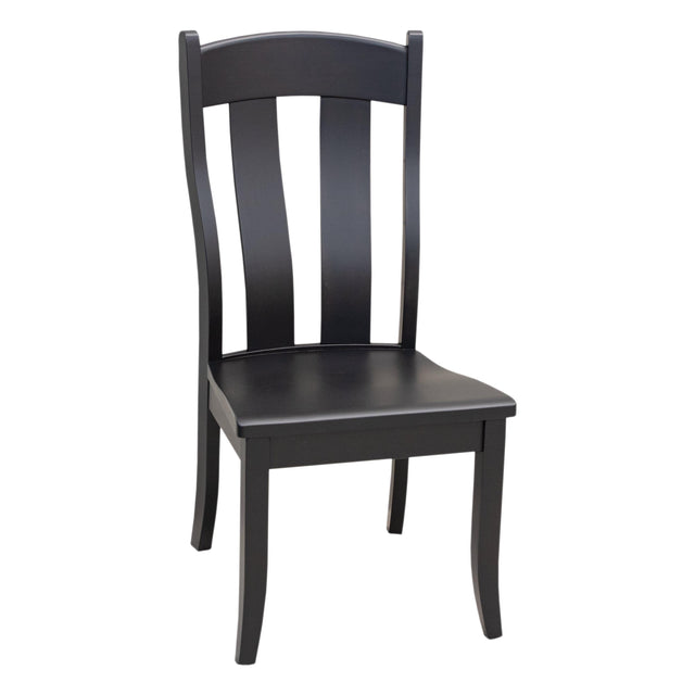 The Austin Side Dining Chair has a two slats in the back that are steamed and bent for support and comfort. Handcrafted with solid hardwood, this Amish made dining chair is built to be durable and long-lasting. This chair is made to order in your choice of wood and color. For more information, contact us at Upstate Amish Furniture Gallery.