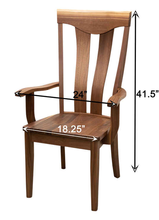 Belmont Walnut Wood Arm Dining Chair | NAT Dimensions