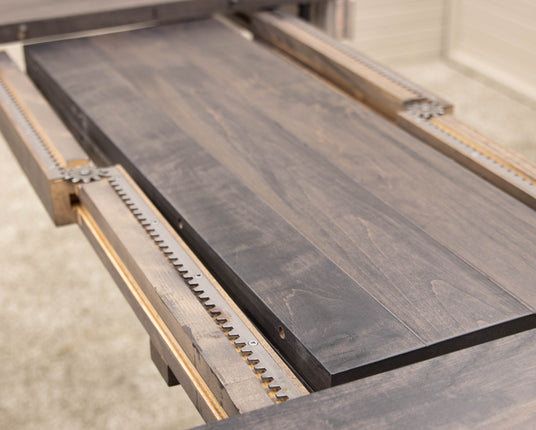 The Camden Shaker Pub Table features leaves that store inside the table. Every dining table is available in your choice of wood type and stain color.