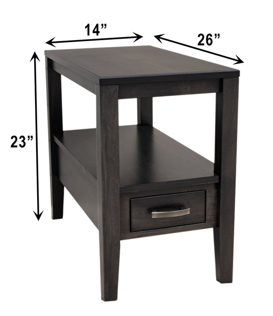 The Century Small Open End Table features sleek, straight lines for a clean and modern look. The stylish accent table is built with solid wood and crafted by Amish artisans in Ohio. Order the sofa table in your choice of wood and color. For more details, contact a member of our team at Upstate Amish Furniture Gallery.