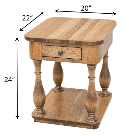 The Lexington Baluster End Table has solid wood turned legs, along with rounded top and base corners, creating a cozy look for your living room. This Amish made end table is available for order in your choice of wood, color and size to complement the space you have. Contact us at Upstate Amish Furniture Gallery for more details.