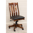 The Amish-made Fostoria Office Chair features steamed and bent back slats and is the perfect choice for smaller office or craft areas. The desk chair is shown with a gas lift base to easily adjust the seat height as needed, and can be ordered in any wood & fabric color. For more details, contact a member of our team.