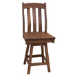 The Fostoria Swivel Bar Stool features a slatted back, steamed and bent for maximum comfort and support. The Amish-made bar stool is carefully crafted to be durable and long lasting. Barstools are standard at either 24” or 30” high at the seat. There should be a 12” drop from a counter to the seat height. Each bar stool can be ordered in any wood or color. Contact a member of our team for more information.