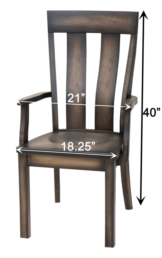 The Hampton Arm Dining Chair features a steamed and bent back and sleek top boards, adding elegance to any dining space. The Amish-made dining chair is crafted with solid wood, constructed to be durable and long-lasting. The chair can be custom ordered in any wood species and color. Contact a member of our team for more details.
