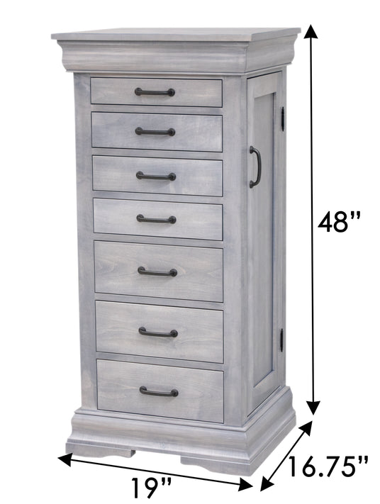 The Louis Phillippe Jewelry Armoire is a beautiful, handcrafted jewelry armoire that is functional for organizing jewelry and accessories. This solid wood Amish piece is made with top-notch materials, crafted with care. Order the armoire in your choice of wood and color. For more details, contact a member of our team at Upstate Amish Furniture Gallery.