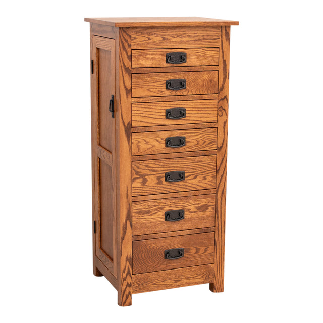 This Mission Jewelry Armoire from Upstate Amish Furniture Gallery is an Amish-made armoire that offers discreet storage for your jewelry. Built with solid wood, the armoire is a classic style, functional piece for any bedroom space. Order it in your choice of wood and color. For more details, contact a member of our team at Upstate Amish Furniture Gallery.