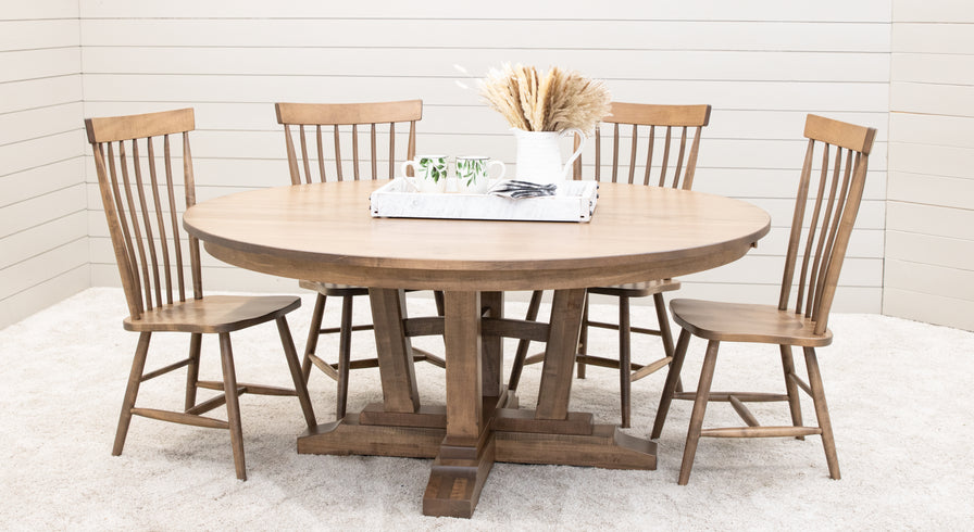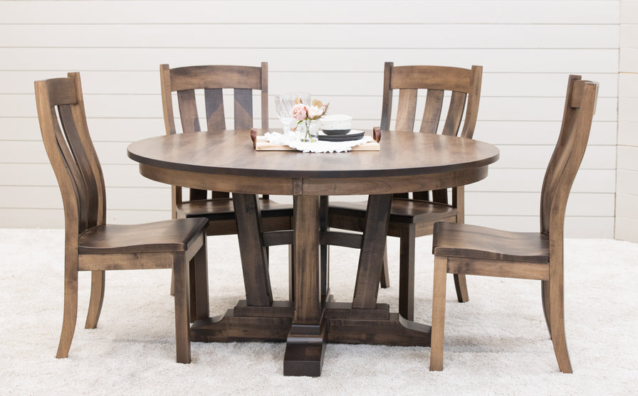 Looking for a durable and stylish dining table? Consider the Alberta Round Extending Dining Table from Upstate Amish Furniture Gallery. This Amish-made table is designed to last and features a convenient extending mechanism that allows you to add an optional leaf for extra seating space. The dining table can be ordered in your choice of wood type and color. Contact a member of our team for more details.