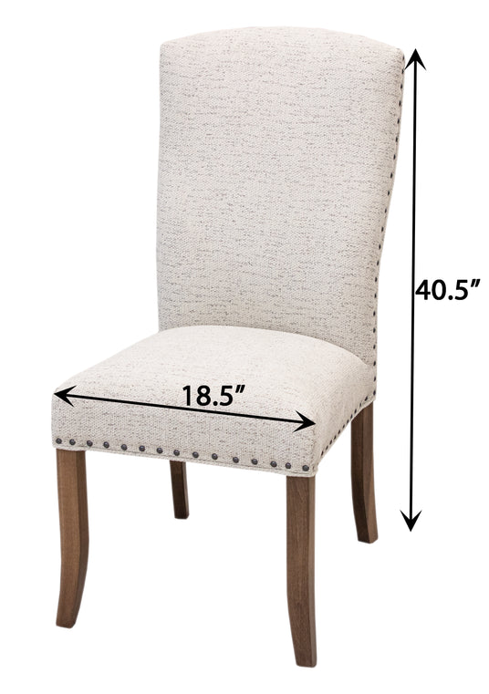 The Park View Upholstered Dining Chair is formal and stylish. Made with a fabric seat and back and shaker style legs, this chair pairs easily with many dining table styles. The Amish-crafted chair can be ordered in your choice of fabric/faux leather color and wood base. When purchasing a dining table and chair set, this wood base will automatically match the dining table you purchased. For more details, contact a member of our team.