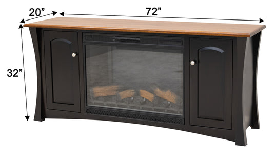 The Brooklyn TV Console features a curved leg style and includes an electric fireplace insert, creating a cozy look to any living room. This Amish made TV stand features two doors on the outside with an adjustable shelf behind each one, providing storage space. Order this TV console in your choice of wood and color, to fit the space you have. Contact us at Upstate Amish Furniture Gallery for more information.