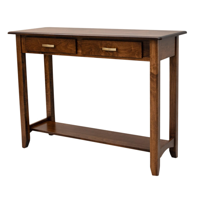 The Austin Open Sofa Table features tapered legs and a smooth top with rounded corners. Amish made by craftsman in Ohio, the sofa table is built with solid wood and made to be sturdy and long lasting. Order this piece in your choice of wood and color. For more information, contact a member of our team at Upstate Amish Furniture Gallery.