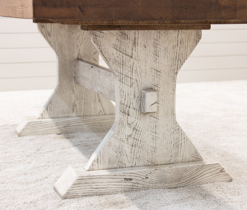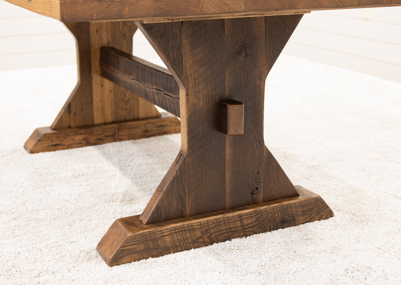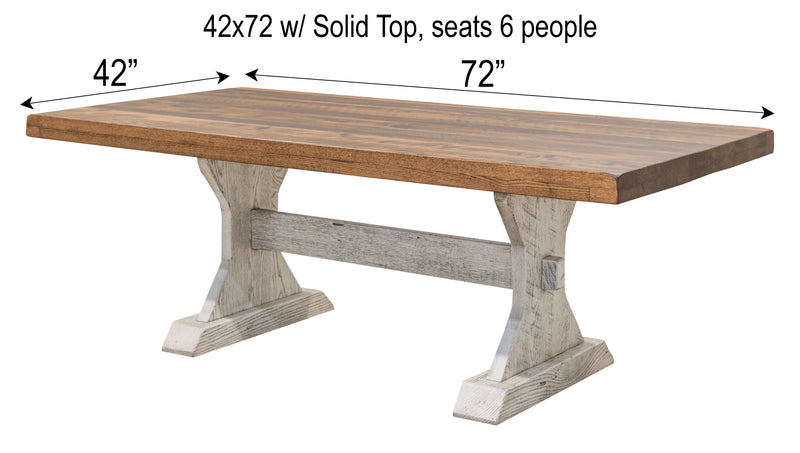 The Timberland Dining Table features a solid wood top, made out of Reclaimed Barnwood. This table is crafted with durable construction for lasting use. For more information, contact our professionals at Upstate Amish Furniture Gallery.