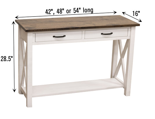 The Cambria Open Sofa Table features an X-style design and is built with solid hardwood. The Amish made piece can be ordered in your choice of wood and color. For more details, contact a member of our team at Upstate Amish Furniture Gallery.