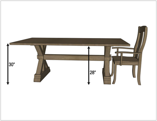 The Farmhouse Trestle Dining Table is available in your choice of wood type and stain color.