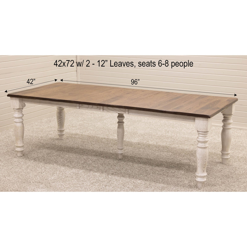 The Arcadia Farm Leg Extending Dining Table features a 1.25" thick Settler's Plank Top with hand-worn edges. The Amish dining table features Self Storing Leaves - Planks run widthwise and extend easily with Gear Slides, and with no leaves - Planks run lengthwise. This table is crafted with durable construction for lasting use. For more information, contact our professionals at Upstate Amish Furniture Gallery.