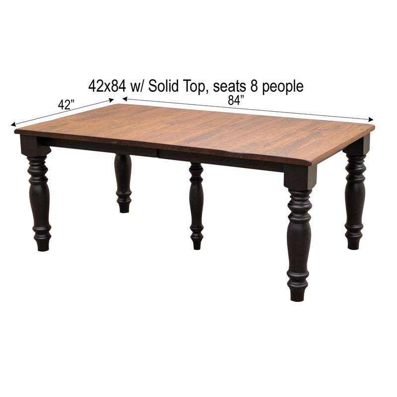 The Arcadia Farm Leg Dining Table features self-storing leaves that store inside the table. Every dining table is available in your choice of wood type and stain color.