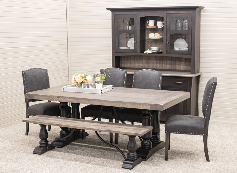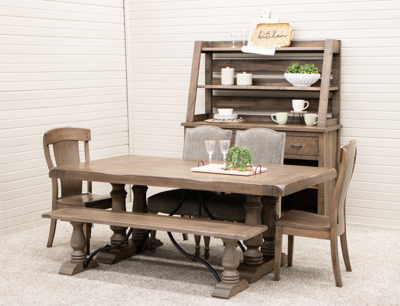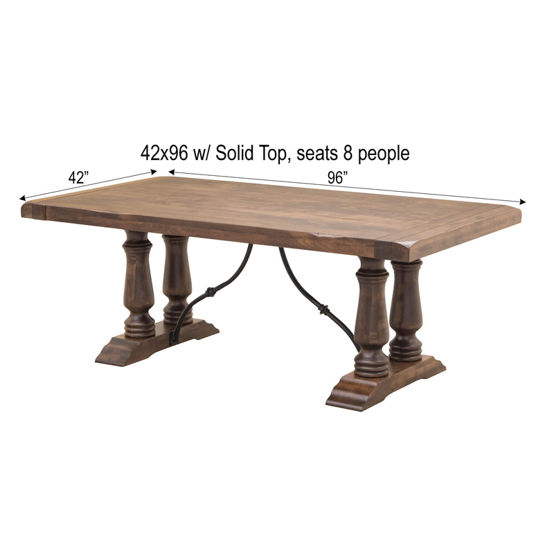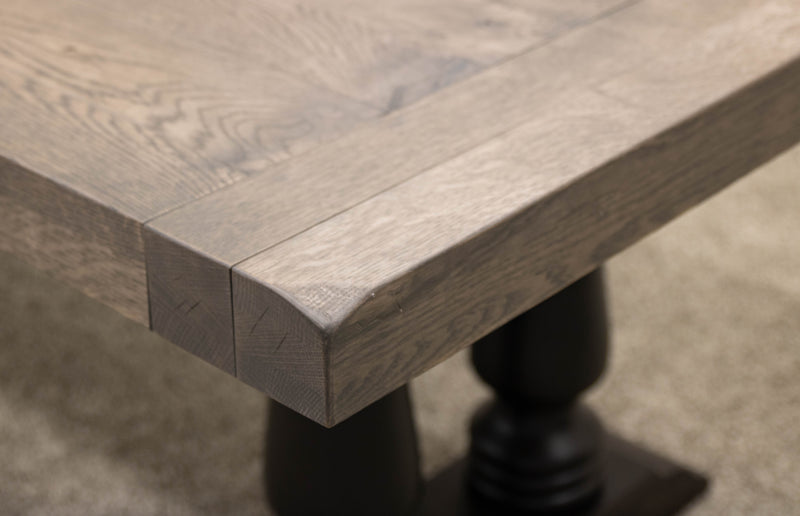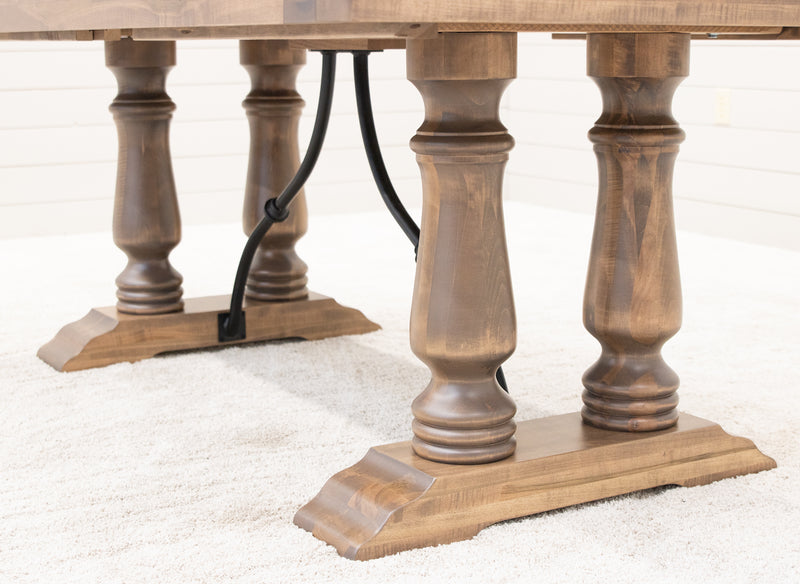 The Alexandria Extending Dining Table Upstate Amish Furniture Gallery offers, has a 3" Built-Down Top with Breadboard Ends. Leaves are not stored within the tabletop of this style. The top is crafted from thick and reliable solid, hardwood for stability, making it an ideal choice for hosting gatherings or family meals. Additionally, the breadboard ends provide extra support and structure for this Amish dining table.