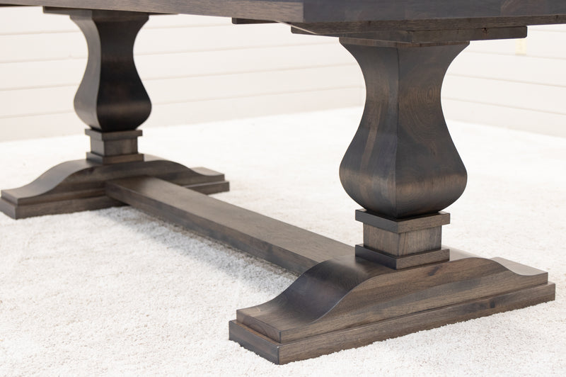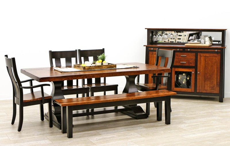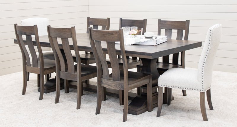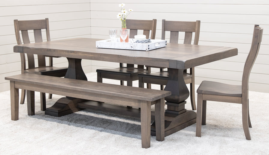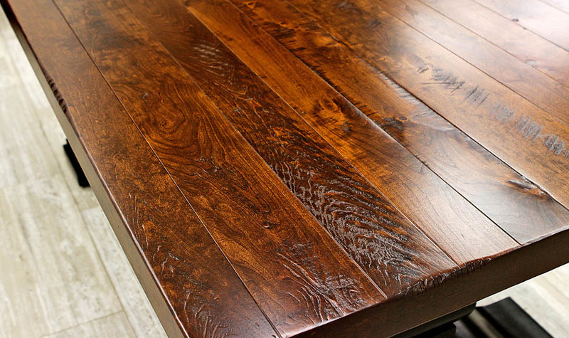 The Hillside Dining Table features breadboard ends to fit additional leaves for more table space. Every dining table is available in your choice of wood type and stain color.