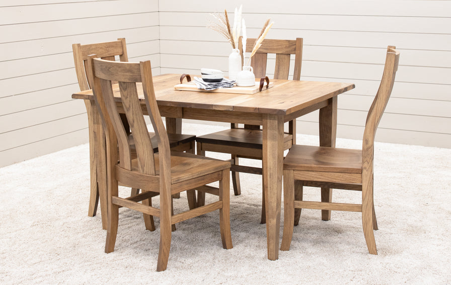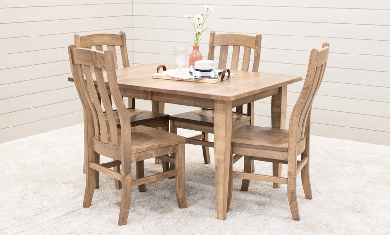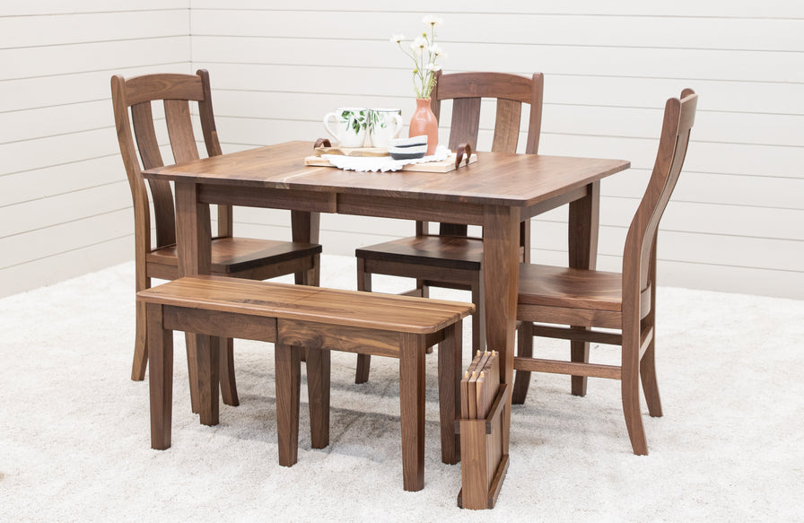 The Lakeland Shaker Dining Table features leaves that store inside the table. Every dining table is available in your choice of wood type and stain color.