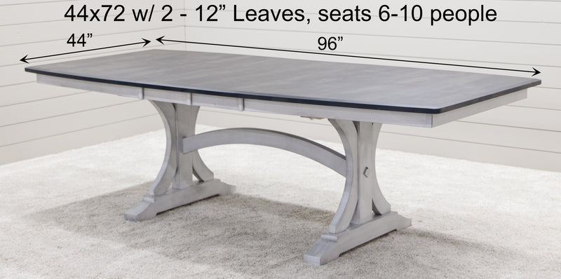 The Napoleon Trestle Dining Table features self-storing leaves. Constructed with solid hardwood, the table is available in your choice of wood type and stain color.