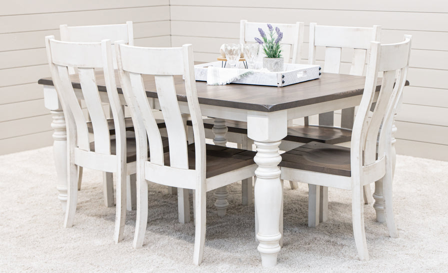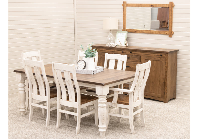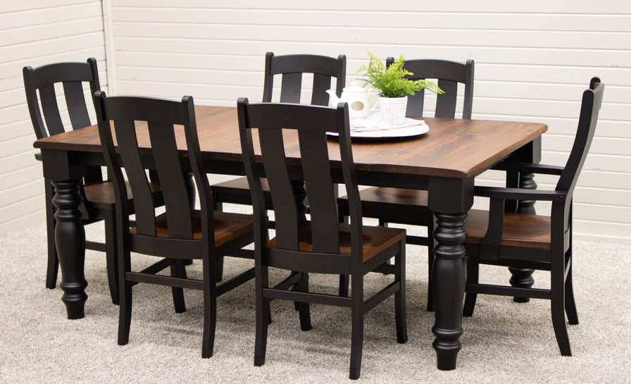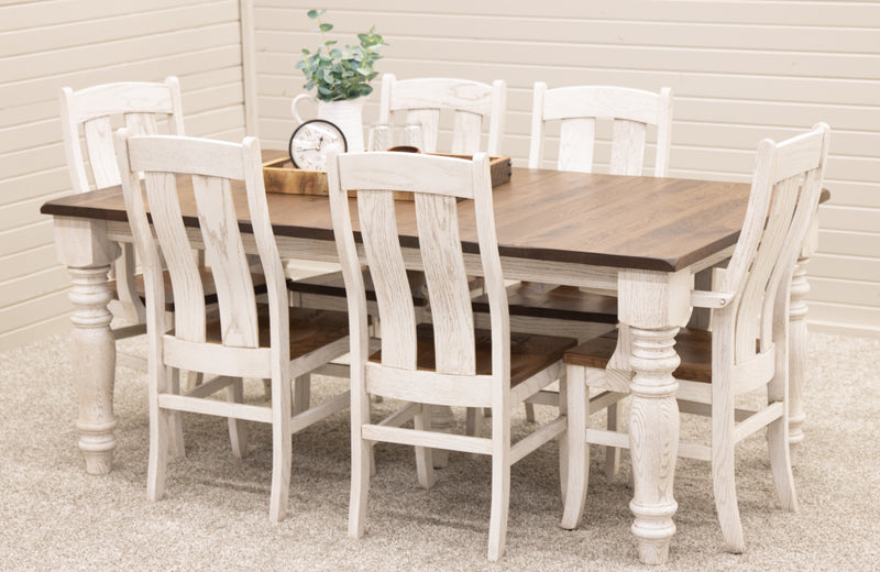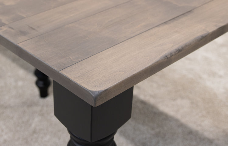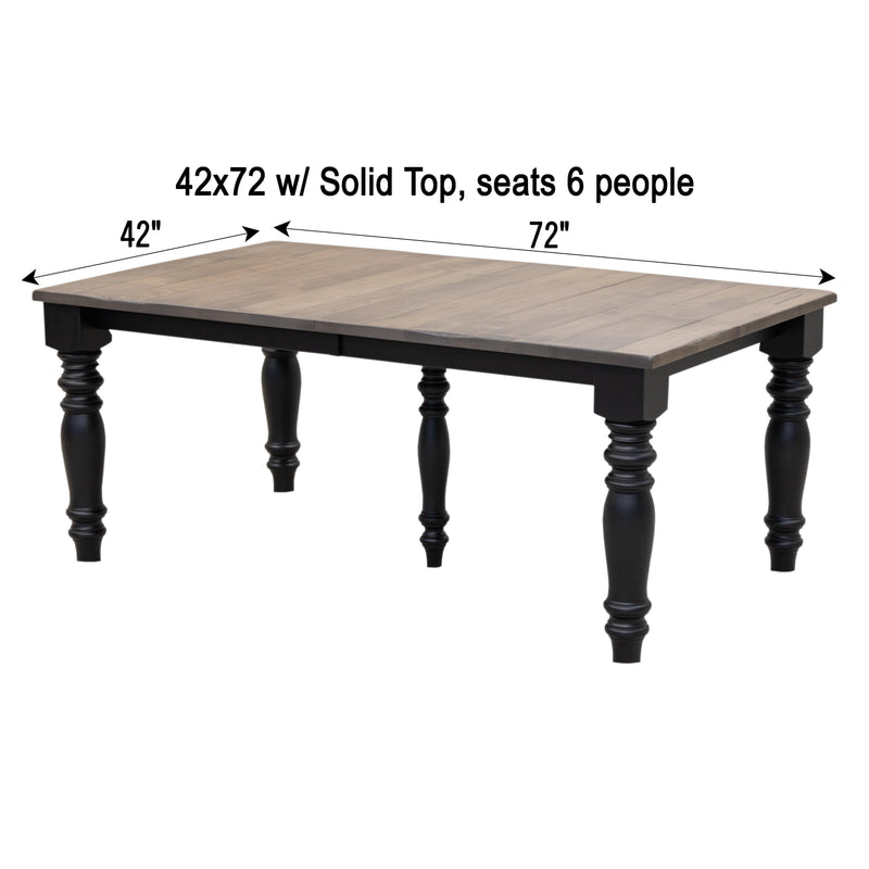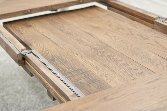 The Arcadia Farm Leg Dining Table features self-storing leaves that store inside the table. Every dining table is available in your choice of wood type and stain color.