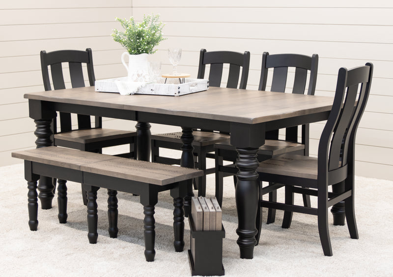 The Arcadia Farm Leg Extending Dining Table features a 1.25" thick Settler's Plank Top with hand-worn edges. The Amish dining table features Self Storing Leaves - Planks run widthwise and extend easily with Gear Slides, and with no leaves - Planks run lengthwise. This table is crafted with durable construction for lasting use. For more information, contact our professionals at Upstate Amish Furniture Gallery.