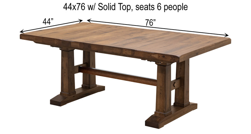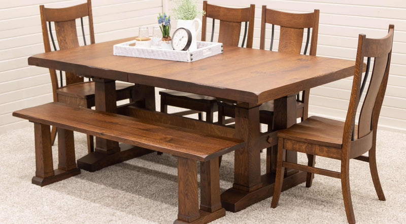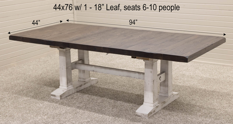 The Rowan Dining Table features leaves that store inside the table. Every dining table is available in your choice of wood type and stain color.