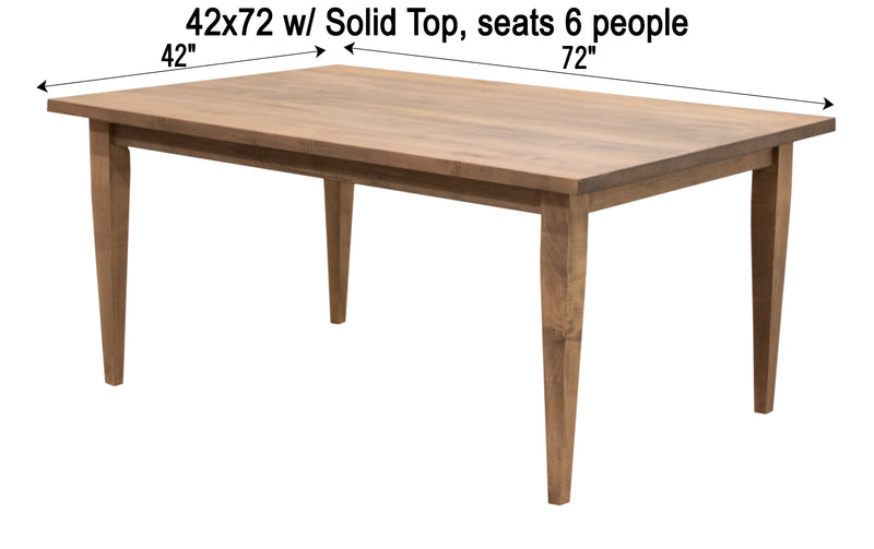 The Shaker Mid Century Dining Table is crafted with solid hardwood. Every dining table is available in your choice of wood type and stain color.