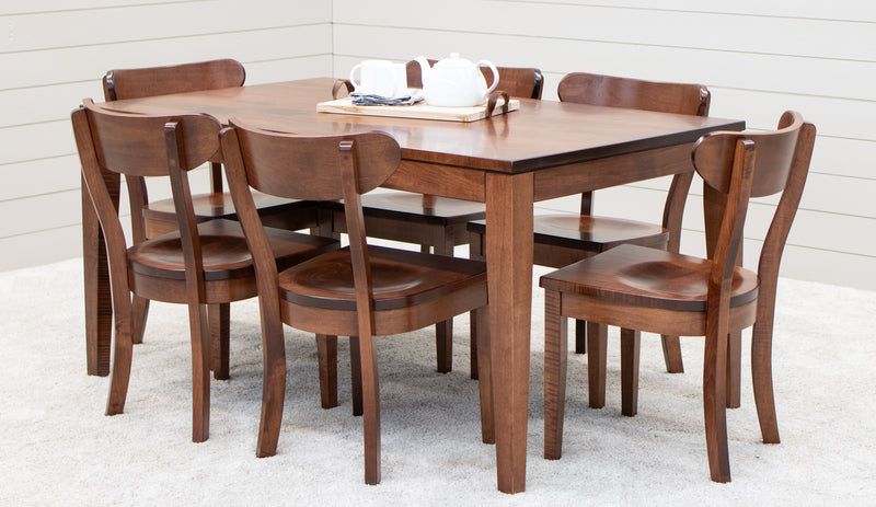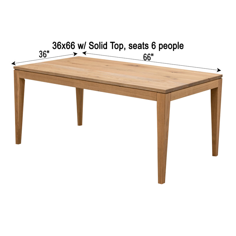 The Monroe Mid-Century Dining Table is a stylish, modern style table that is made from built from solid wood, made to last. The Amish-made table can be ordered your choice of wood and color. The grain runs lengthwise on a table without leaves The grain runs widthwise on a table with leaves. For more information, contact a member of our team.