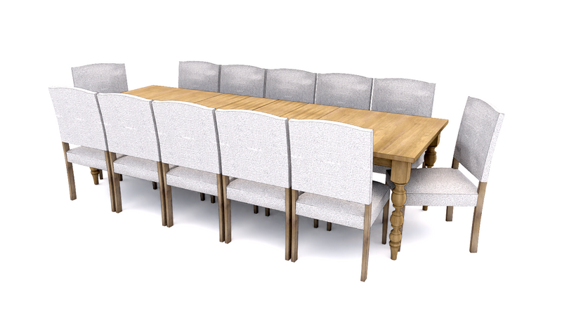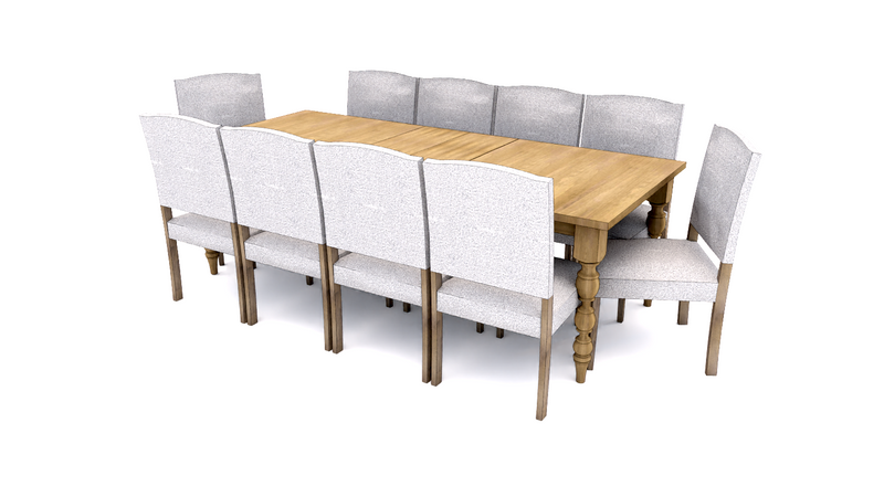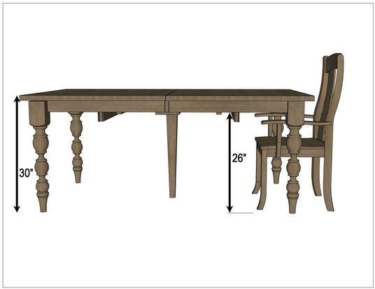 The Parson Turned Leg Dining Table features self-storing leaves that store inside the table. Every dining table is available in your choice of wood type and stain color.