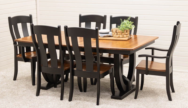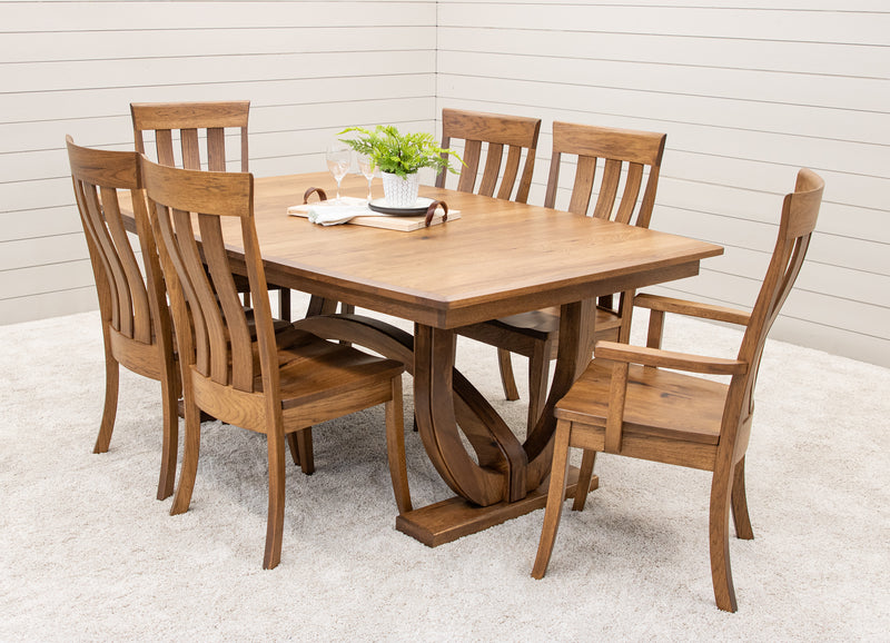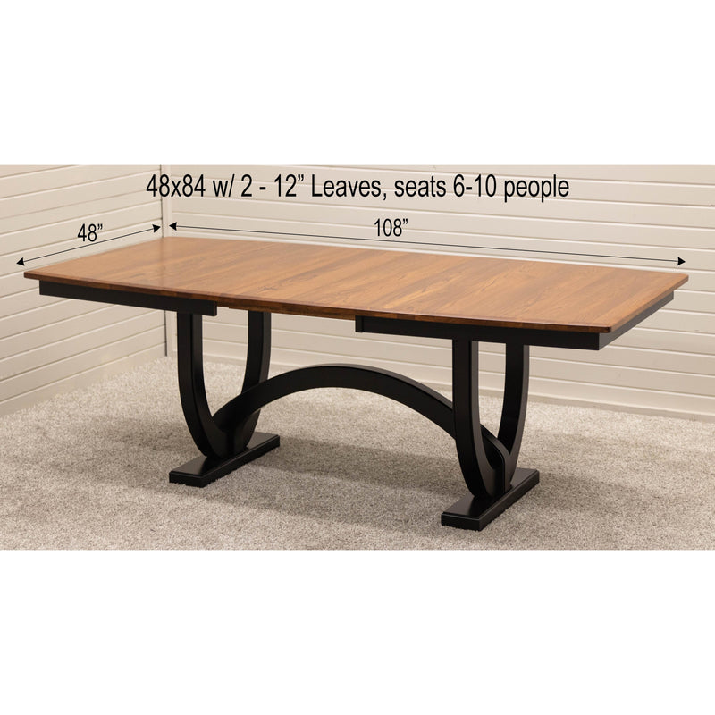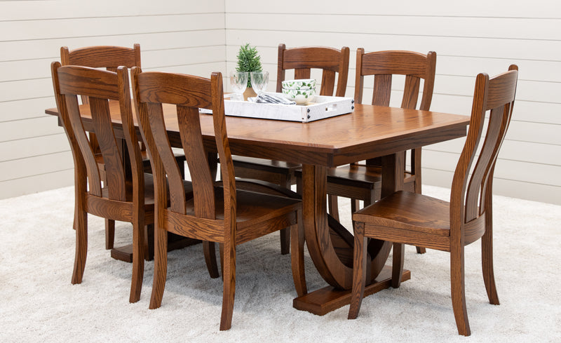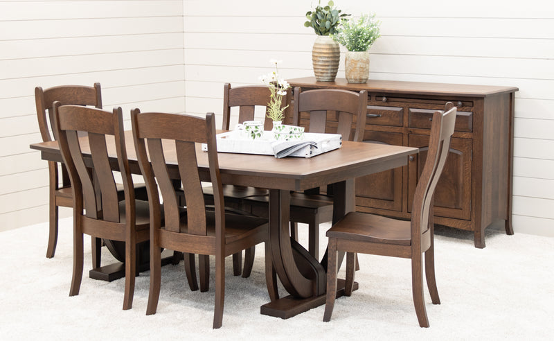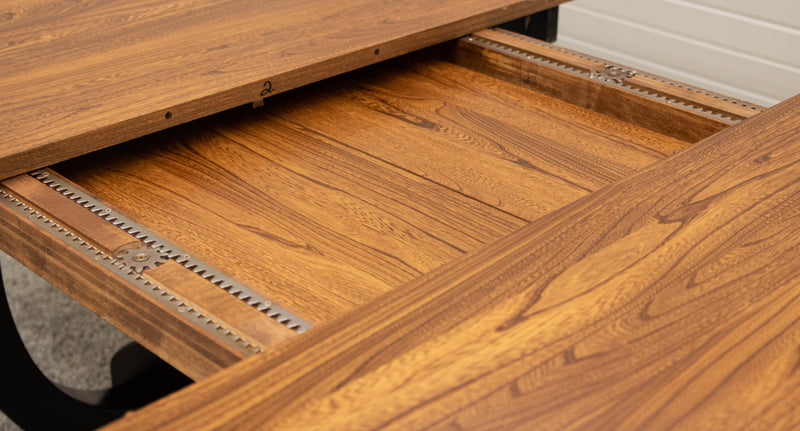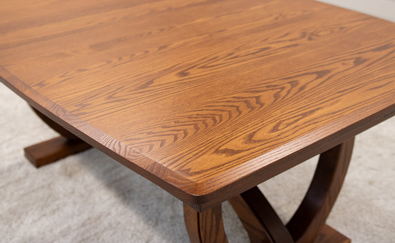 The Biltmore Dining Table features self-storing leaves and a boat-shaped top. Every dining table is available in your choice of wood type and stain color.