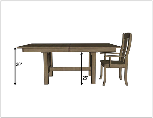 The Heavy Mission Trestle Dining Table is a solid, sturdy hardwood table, built to last. The Amish-made table is handcrafted in Ohio. The grain runs lengthwise on a table without leaves. The grain runs widthwise on a table with leaves. The table can be ordered in your choice of wood and color. For more details, contact a member of our team.