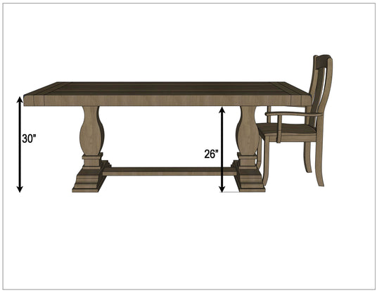 All regular dining tables measure approximately 30" to the top and 26" from the floor to the apron. For more information on this dining table, contact a member of our team.