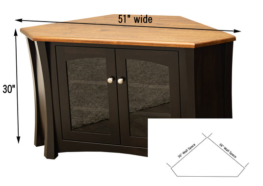 Brooklyn Black & Wood Corner TV Console with Full Glass Doors | M-EB&E-MC