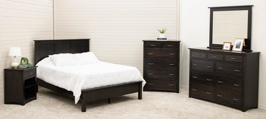 Most Amish Shaker bedroom sets will include the bed, dresser, mirror, chest of drawers and one nightstand. Explore our bedroom collections for inspiration and create your own combination. In addition to the standard items, we also feature armoires, mule chests, chiffoniers, lingerie chests and more.