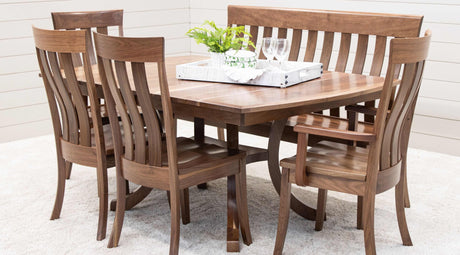 Choosing a solid wood dining room table set with bench adds versatility and style to your eating area. A wooden dining bench is low-profile, allowing a beautiful, Amish dining table to be the focal point in your space. Benches are especially great for families with small children, easily accommodating more people around the table.