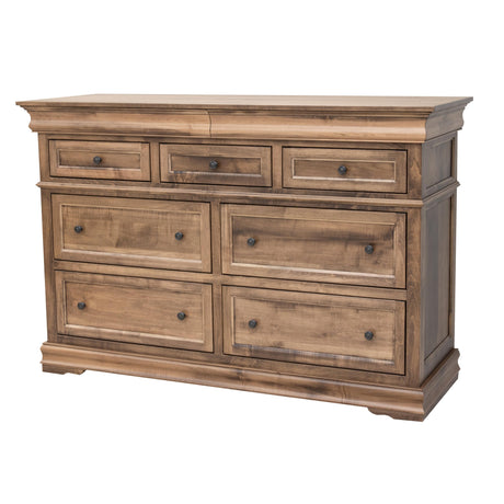 Most dresser styles are available in two standard height options. Tall dressers are approximately 42-45 inches high. Traditional, low dressers are around 35 inches high. All dressers are available with the matching mirror or without.