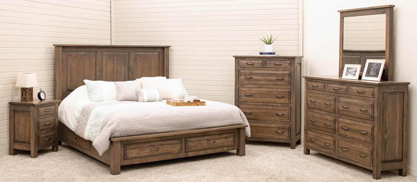 Now that you are familiar with the options in creating a farmhouse bedroom set, browse the gallery for inspiration. Reimagine classic Amish bedroom furniture styles like the Denali, Miranda, Weston and Portland in beautiful farmhouse finishes!