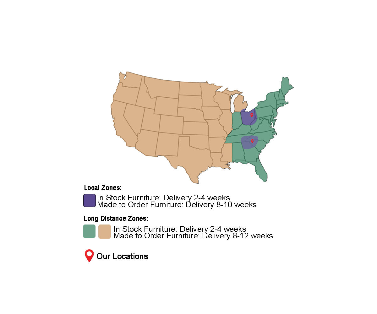Our furniture is made to order in Ohio. As we come close to completion of building the furniture, our team in Ohio will contact you to schedule a delivery date. This is usually done approximately 2 weeks in advance. JR Hershberger will be our scheduling contact in Berlin. He will touch base via text to setup the delivery date. Text back or call him with any delivery questions or scheduling concerns you may have.