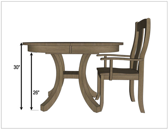The Carlisle Round Dining Table features a large bevel edge and folding, self-storing leaves. The solid wood table can be ordered with an optional 12" hinged leaf, folding in half for storage. Any wood and color of your choice can be ordered. For more details, contact a member of our team for more details.