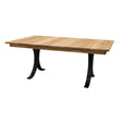 The Eclipse Dining Table features a black metal base and leaves that store inside the table. Every dining table is available in your choice of wood type and stain color.