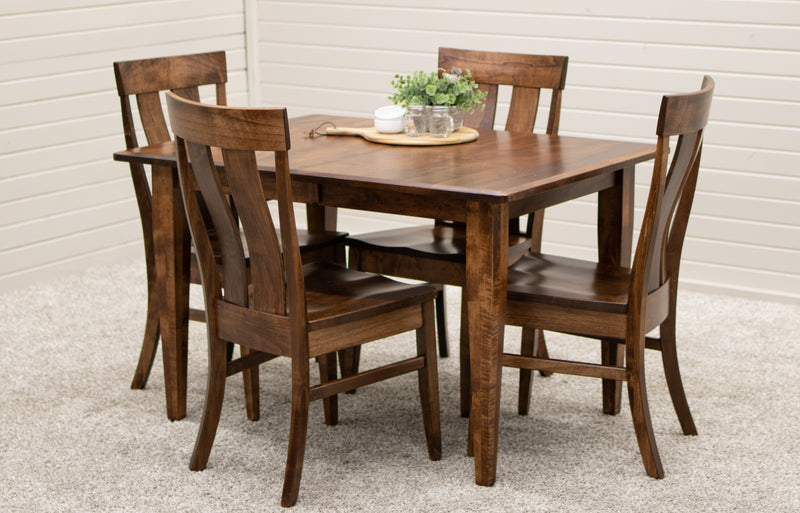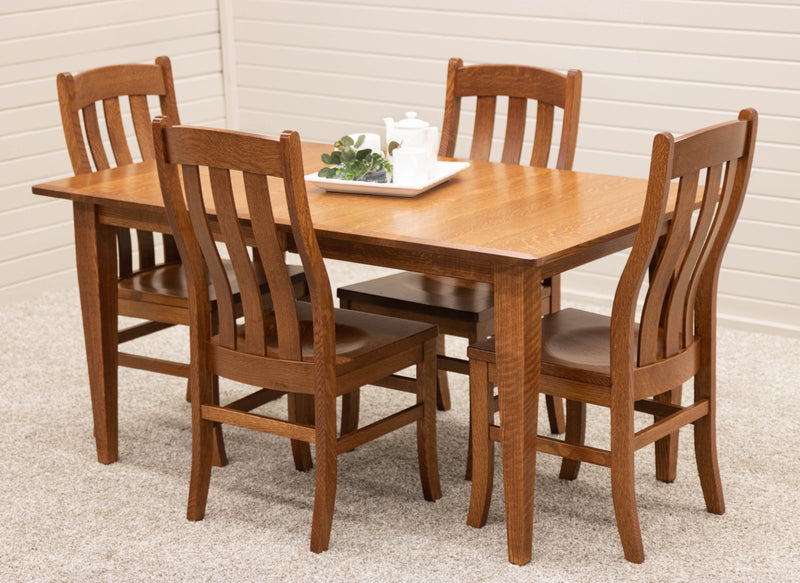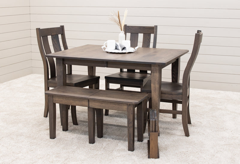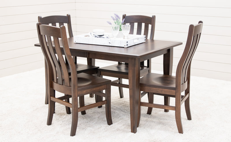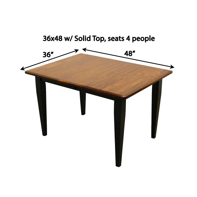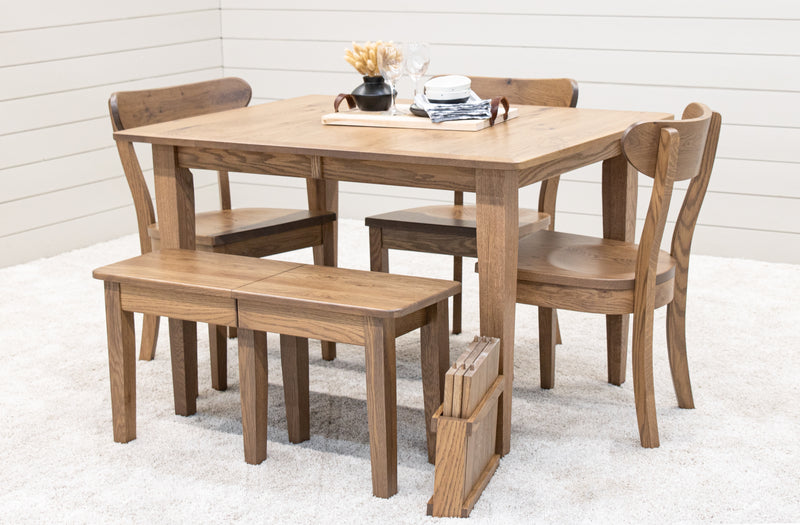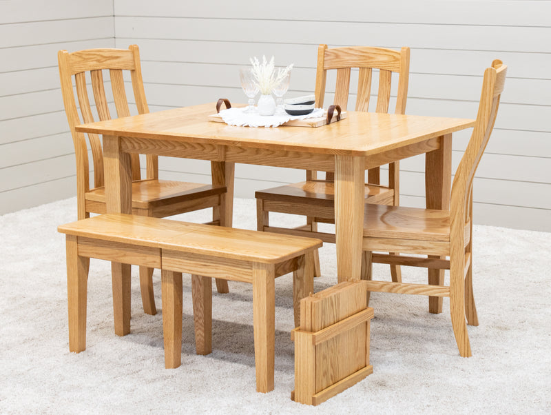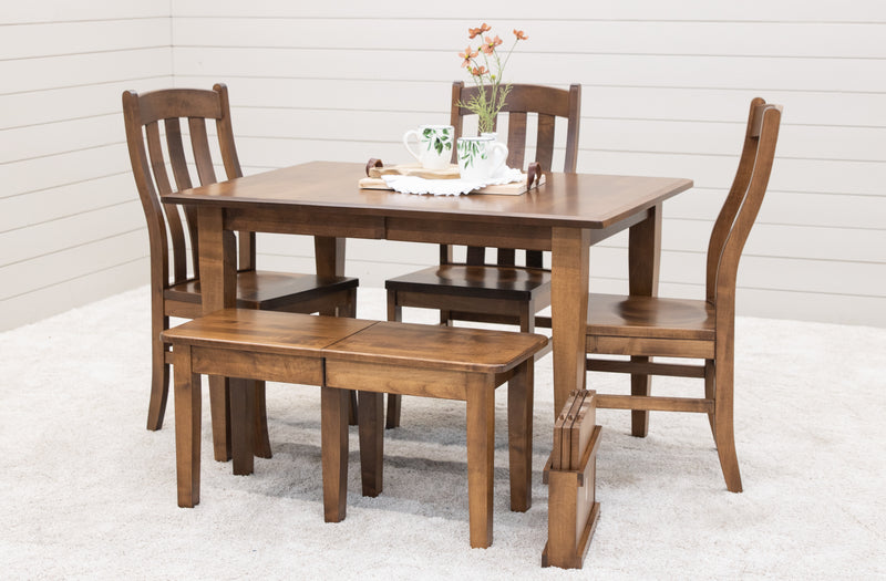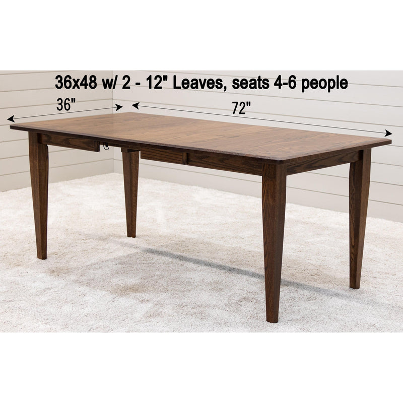 The Lakeland Shaker Dining Table features leaves that store inside the table. Every dining table is available in your choice of wood type and stain color.