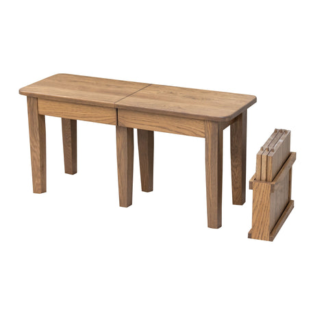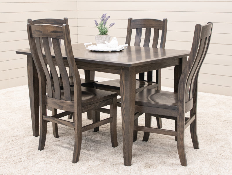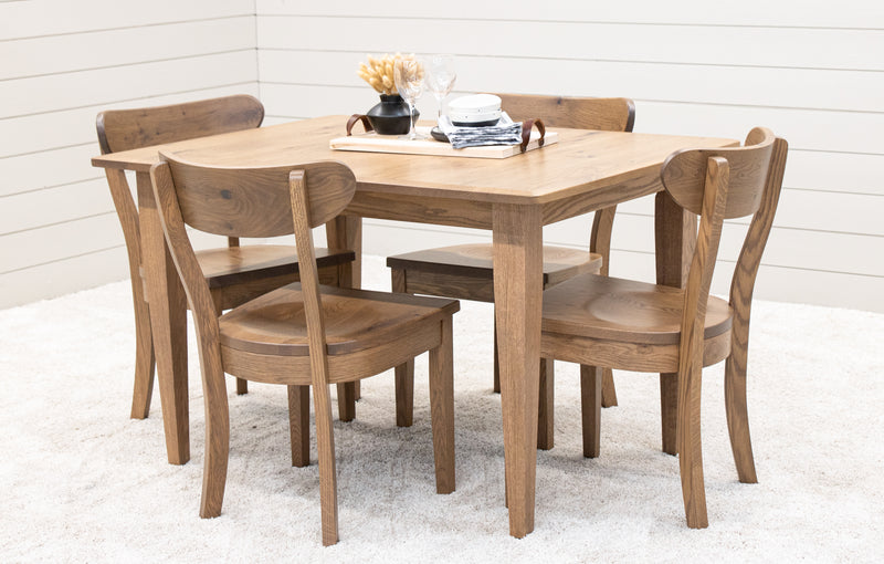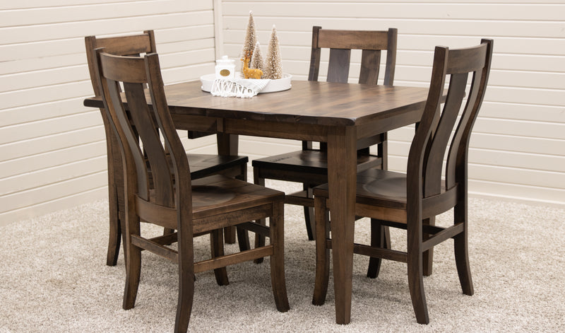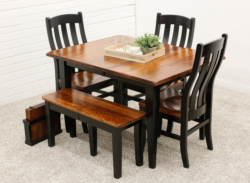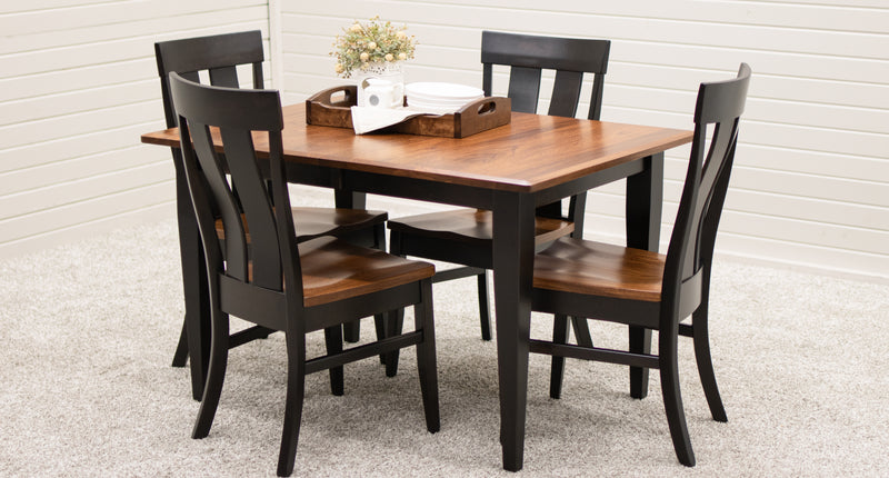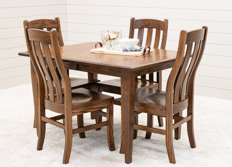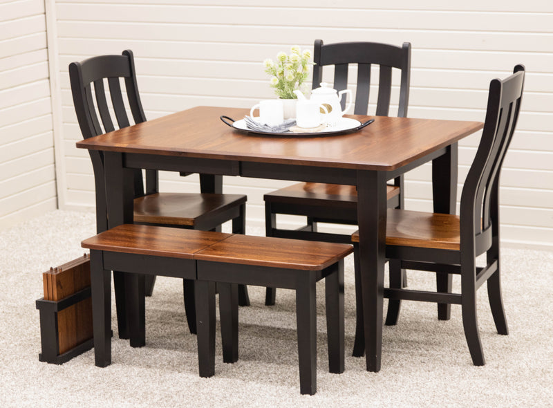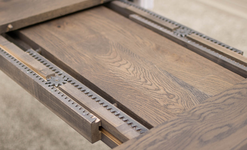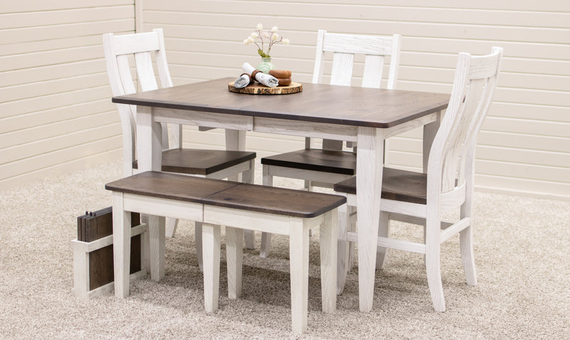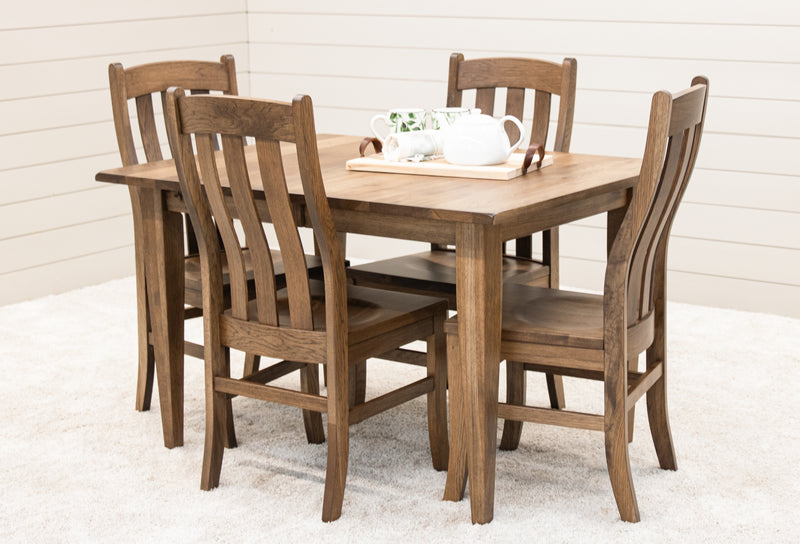 The Lakeland Shaker Dining Table features leaves that store inside the table. Every dining table is available in your choice of wood type and stain color.